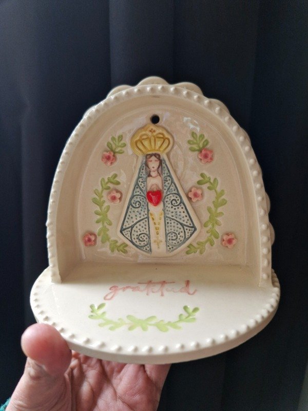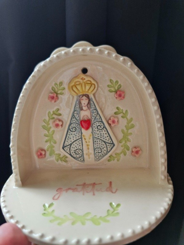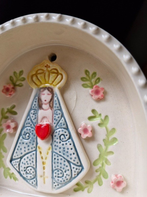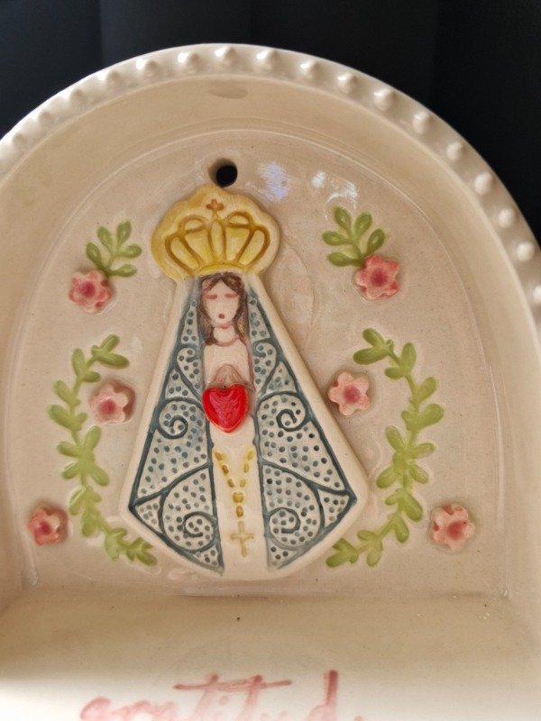 Tiene unas marcas de relieve al costado de la virgen, no está rajado